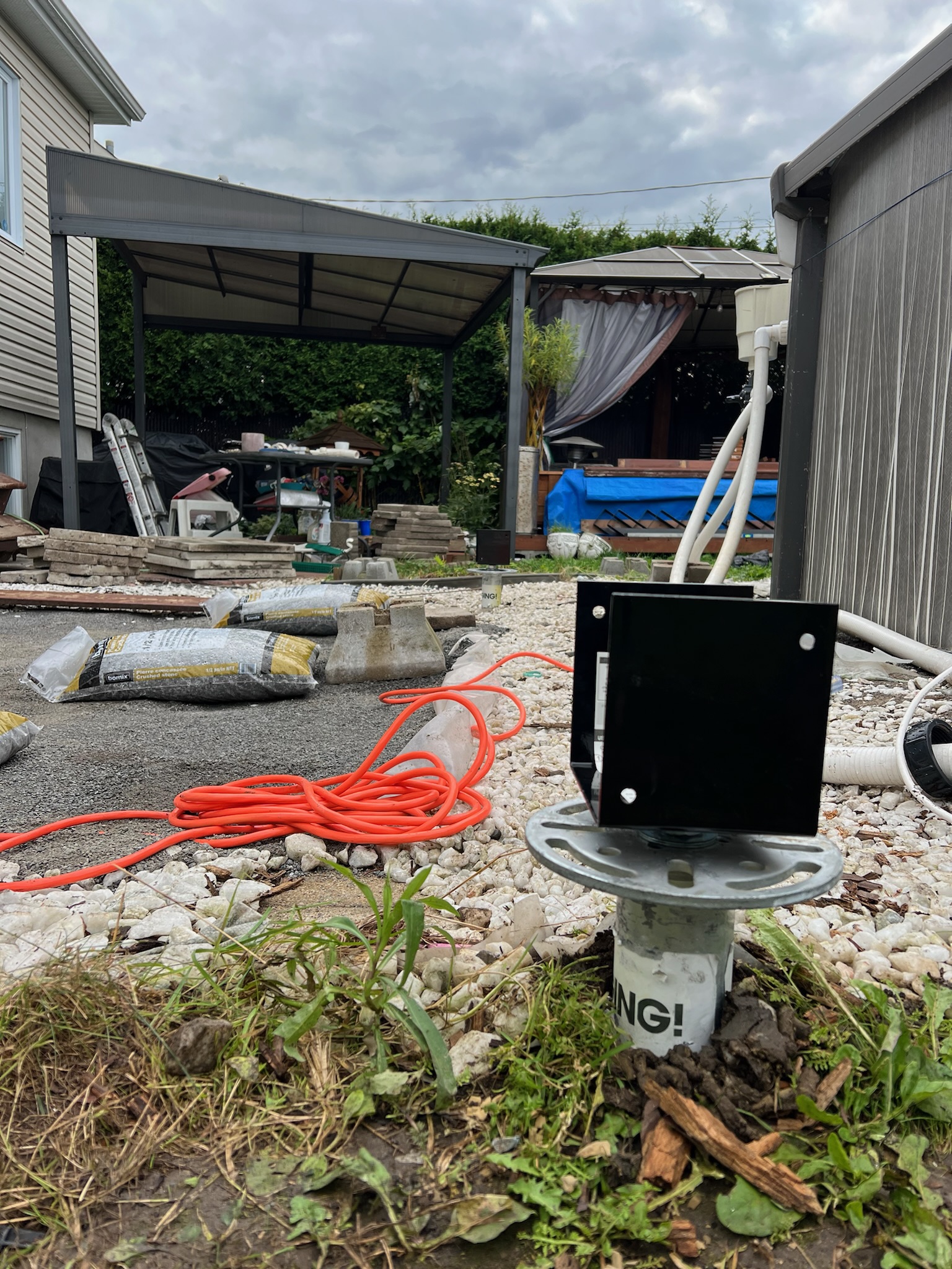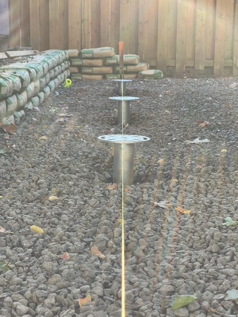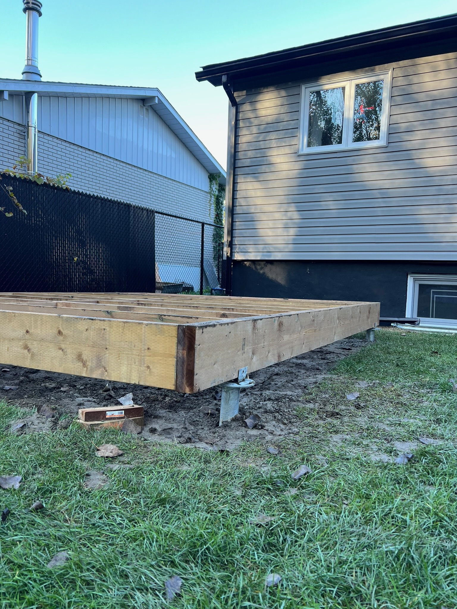 Des bases nivelées, solides et résistantes aux mouvements du sol. Idéales pour les structures extérieures avec revêtement bois ou composite.