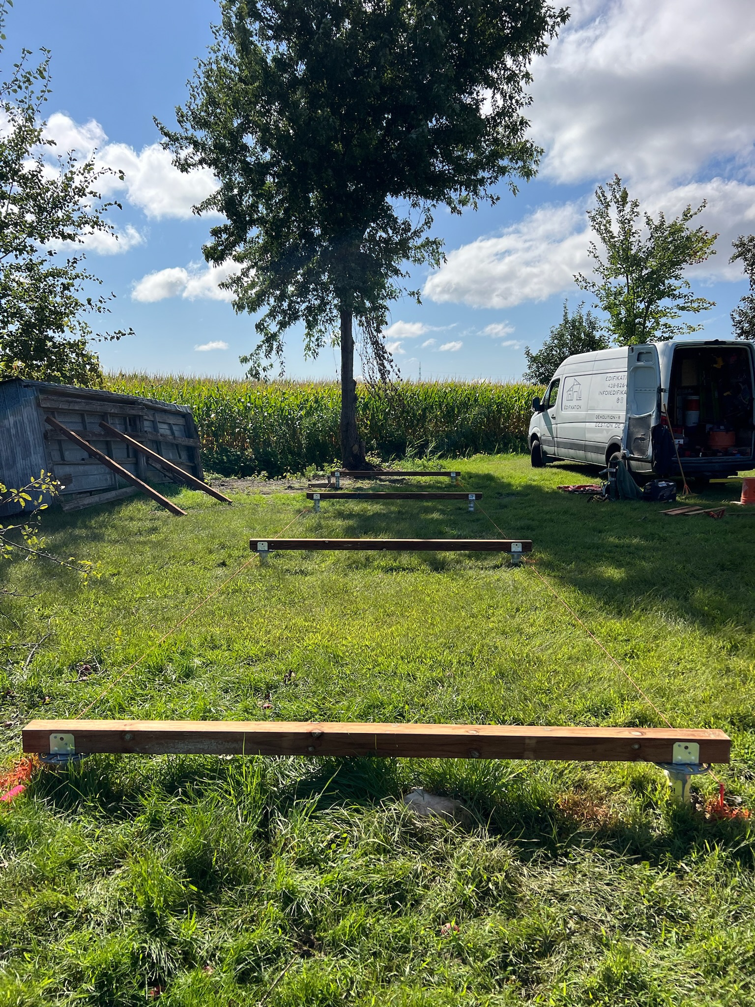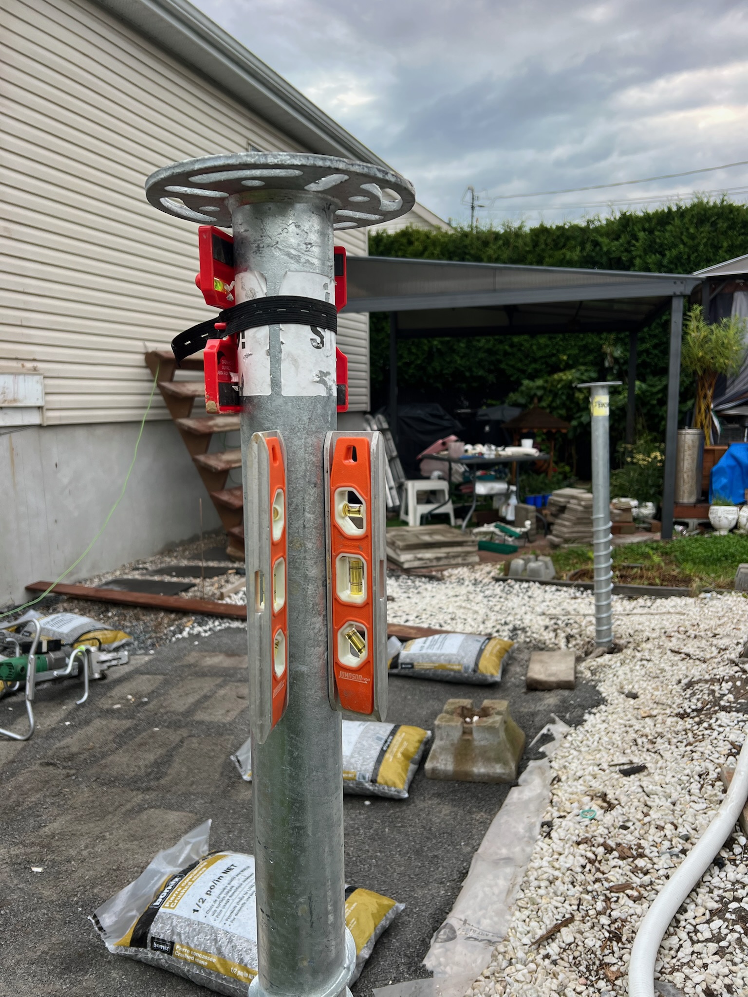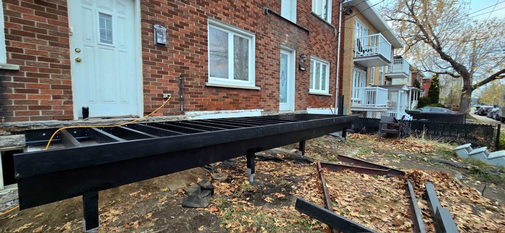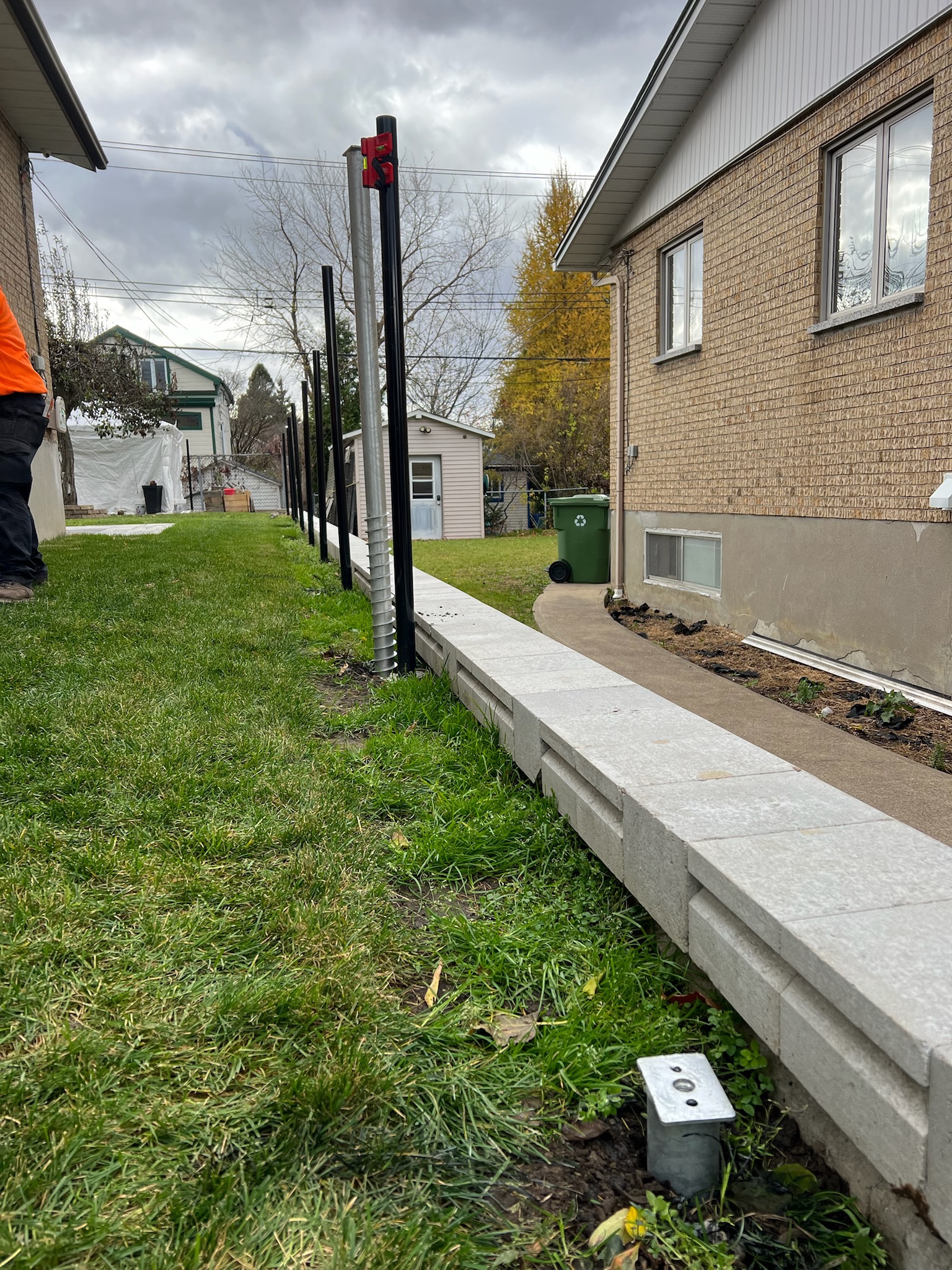 Des bases nivelées, solides et résistantes aux mouvements du sol. Idéales pour les structures extérieures avec revêtement bois ou composite.