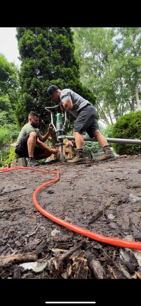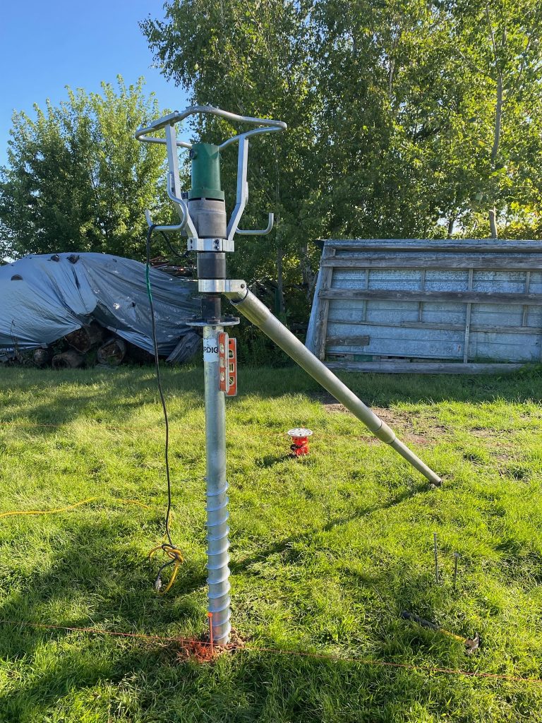 Installation de vis profondes (1600 mm à 2000 mm) pour soutenir des conteneurs d’entreposage, modules préfabriqués ou autres structures imposantes.