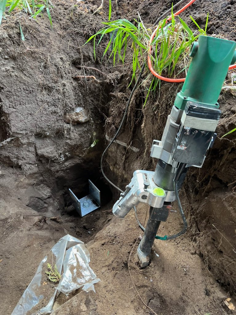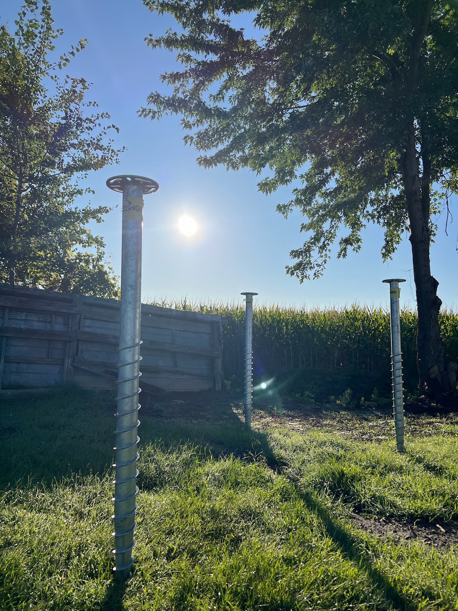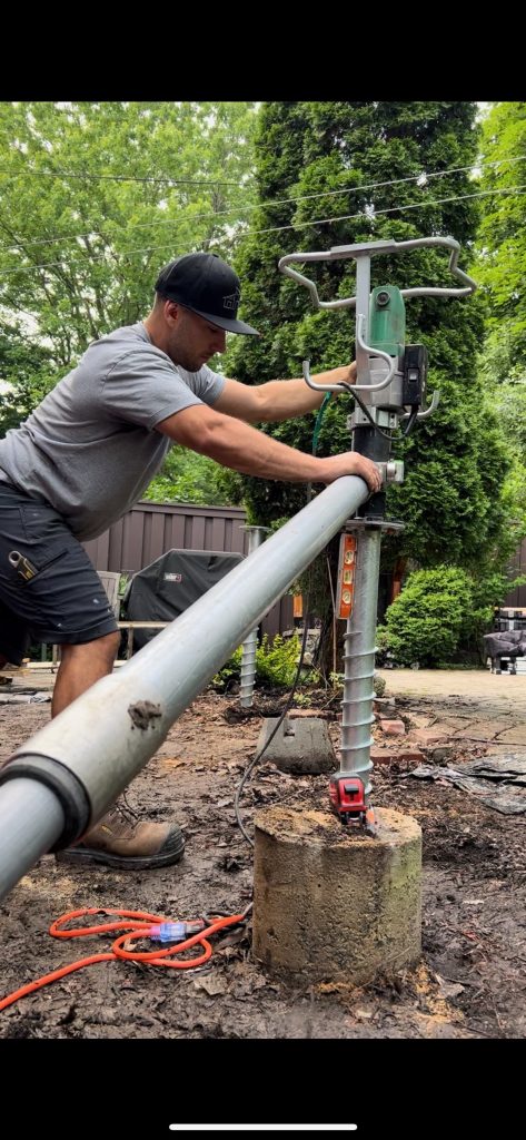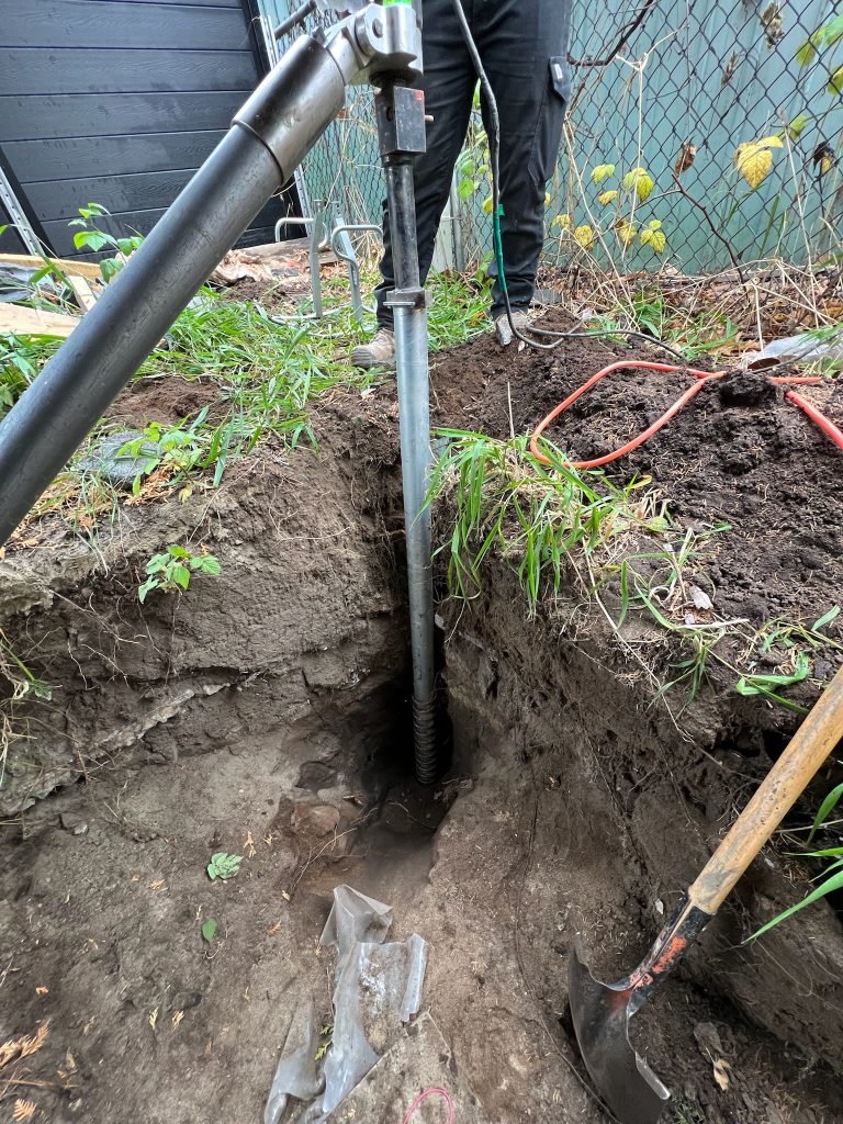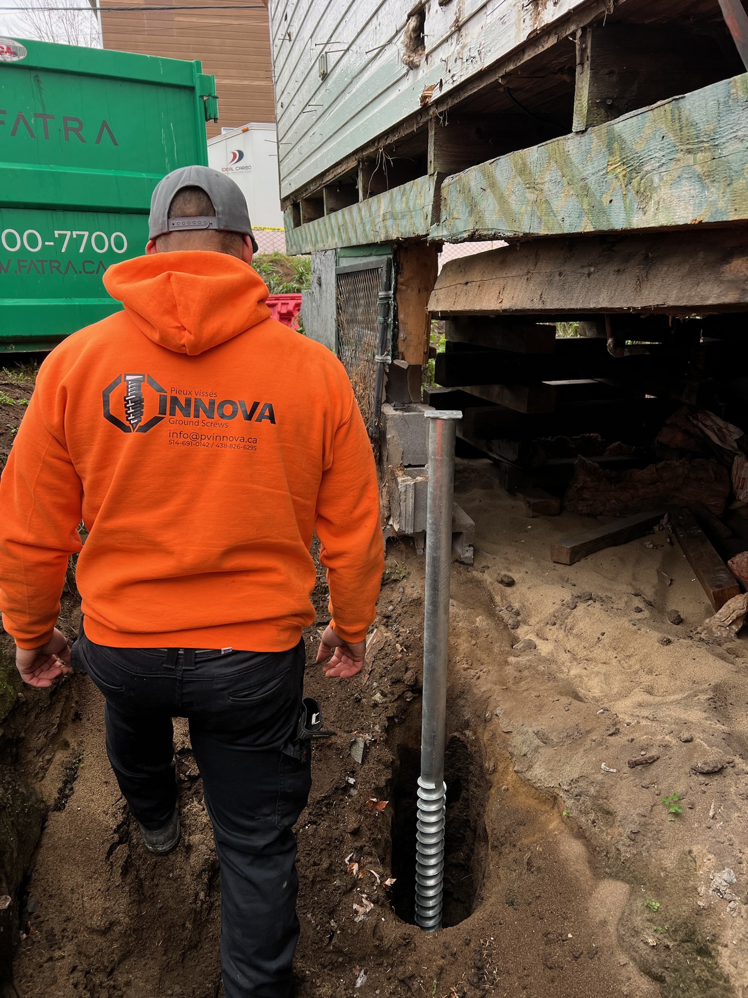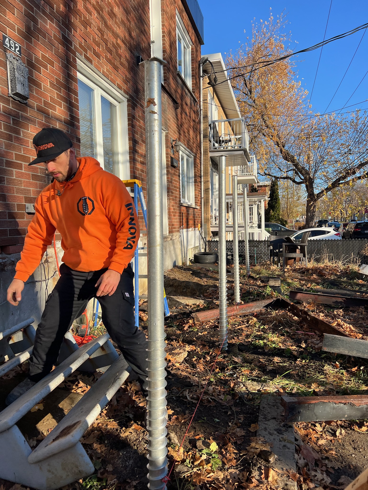 Pose rapide et précise de vis de fondation adaptées à tous les types de projets résidentiels ou légers, sans excavation ni béton.