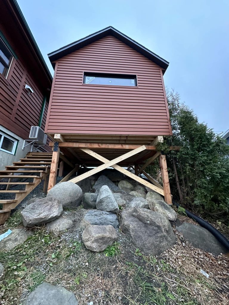 Fondations sans machinerie sur des terrains isolés, en pente ou accidentés — parfait pour chalets, camps de chasse, cabanes forestières, etc.
